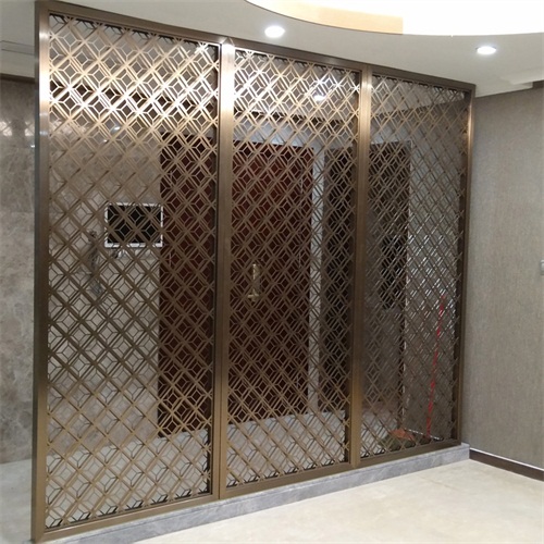 拉絲亞光香檳金抗指紋不銹鋼花格屏風(fēng)隔斷廠家