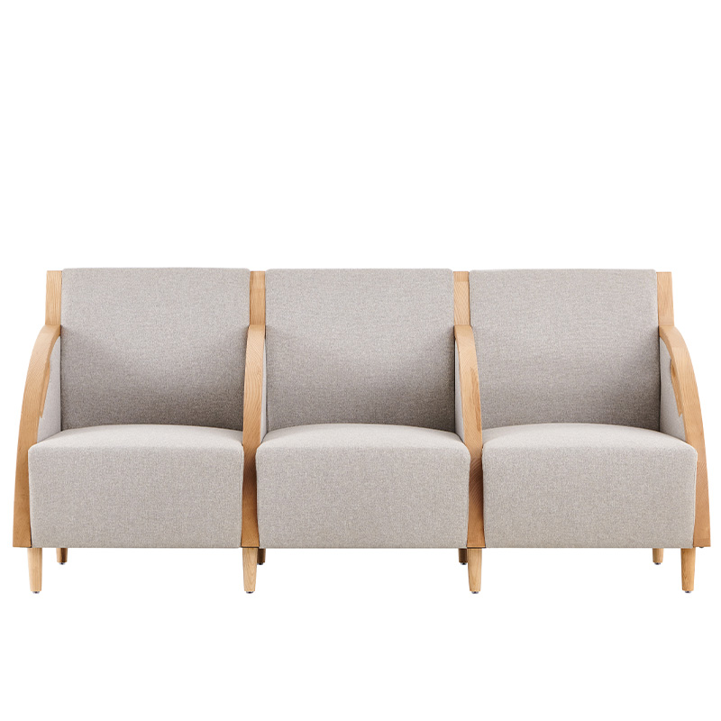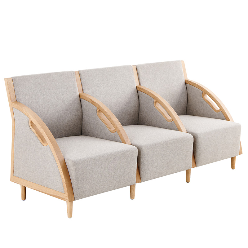 【材質(zhì)說明】: 扶手外框采用A級(jí)白蠟?zāi)局谱?,木扶手?jīng)開料、造型、打磨、噴漆制作;座背軟包可選配布紋及皮革軟包。